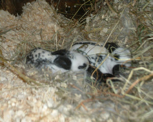 Here they are at fifteen days old, just starting to move around a little bit, they weigh between 6 and 7 ounces each.